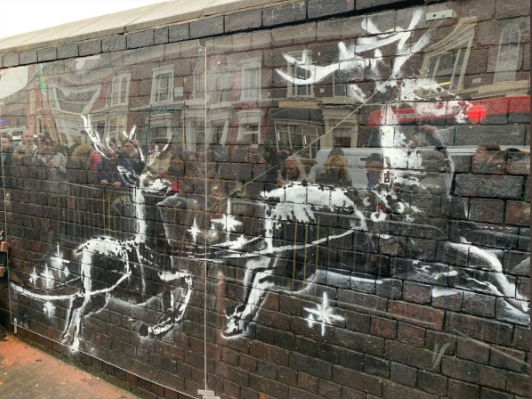In the spirit of Christmas, Banksy created a new mural bringing attention to homelessness.