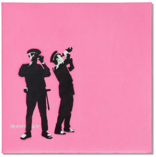 Avon and Somerset Police is the territorial police force responsible for law enforcement in the county of Somerset, and in the four districts that were in the (now defunct) county of Avon: Bristol, Bath and North East Somerset, North Somerset and South Gloucestershire. The relationship between Banksy and law enforcement is nuanced, to say the least – and is a theme he revisits often in his work. When the artist started his graffiti career in Bristol, the local police force had a particularly draconian policy against graffiti, and those caught graffitiing were jailed for their offense.