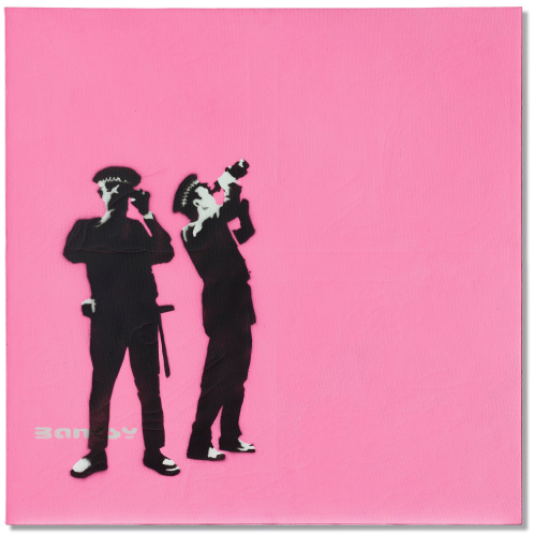 Avon and Somerset Police is the territorial police force responsible for law enforcement in the county of Somerset, and in the four districts that were in the (now defunct) county of Avon: Bristol, Bath and North East Somerset, North Somerset and South Gloucestershire. The relationship between Banksy and law enforcement is nuanced, to say the least – and is a theme he revisits often in his work. When the artist started his graffiti career in Bristol, the local police force had a particularly draconian policy against graffiti, and those caught graffitiing were jailed for their offense.