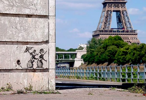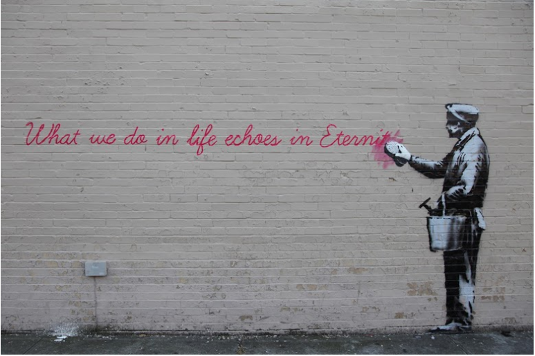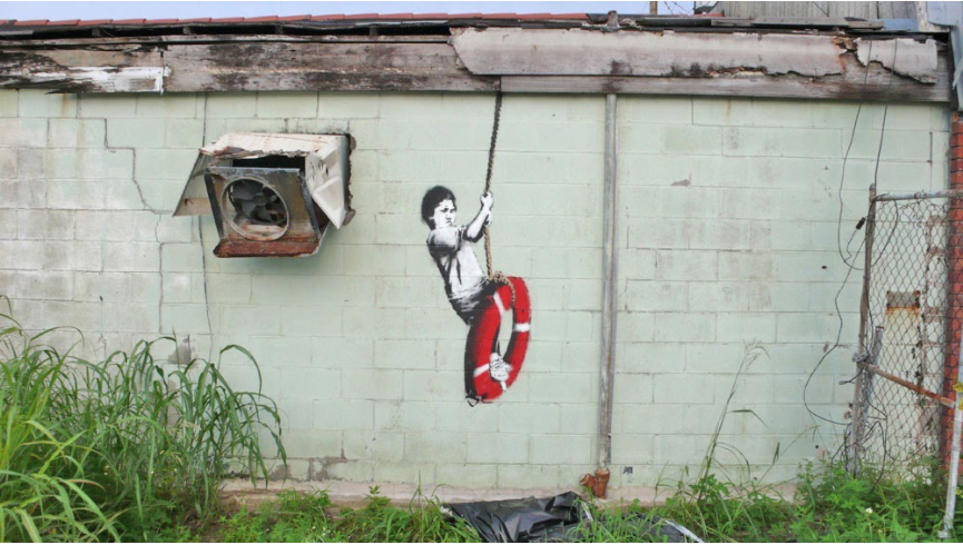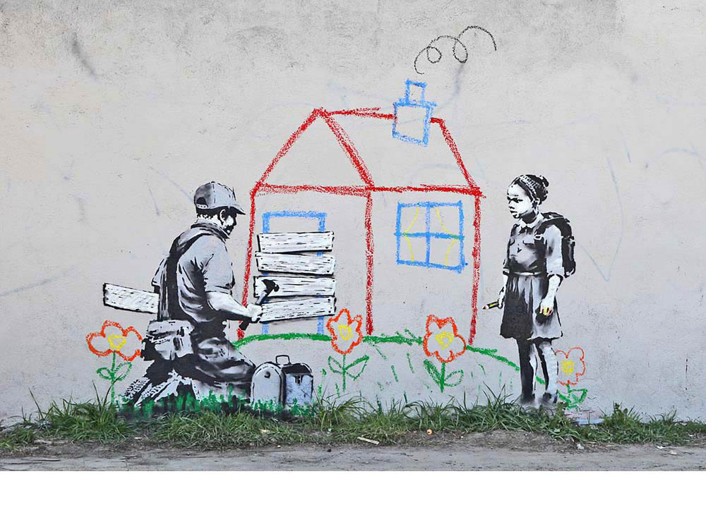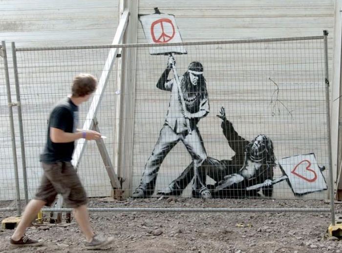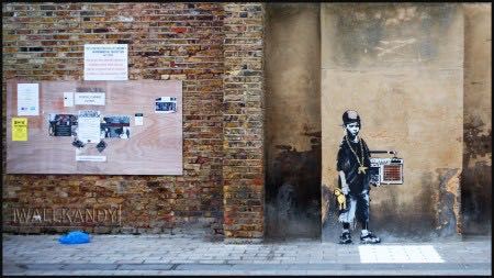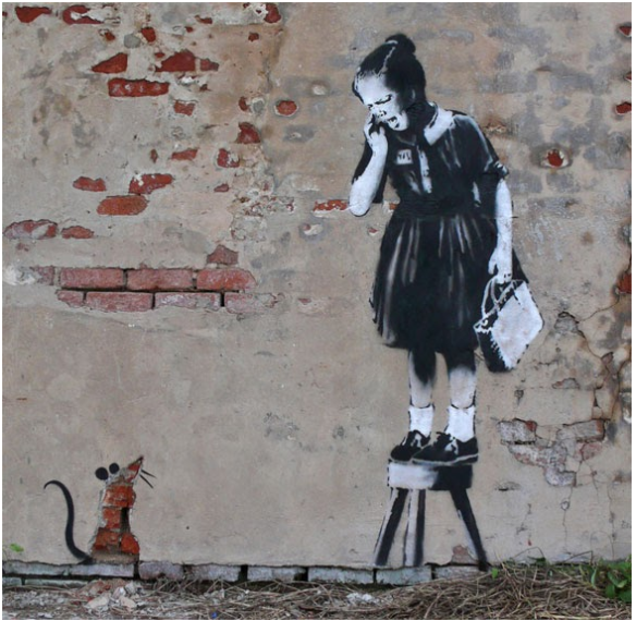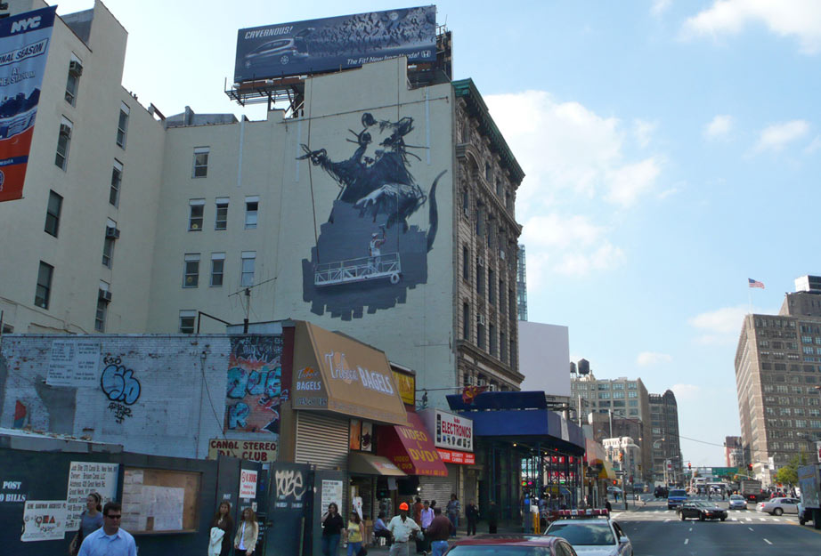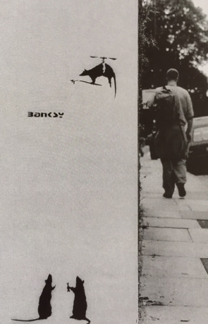 Banksy is a muralist above and beyond any other art forms. He started to paint murals since his very early years as an artist, and never stopped… Banksy’s first and most important canvas is the street and it is with no doubt the most powerful one.