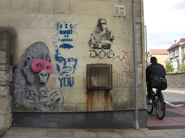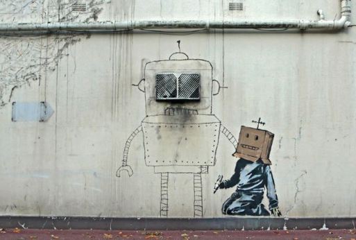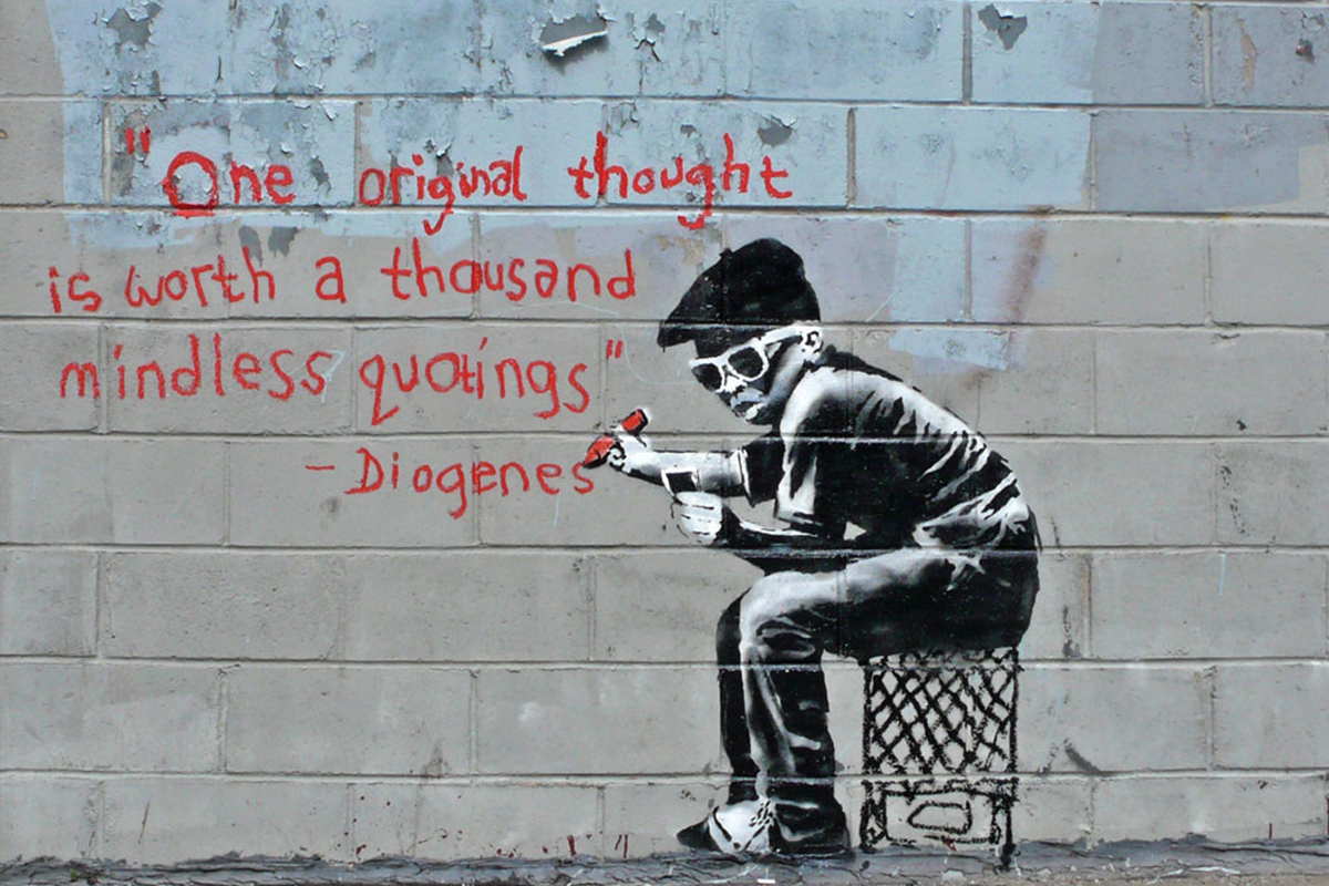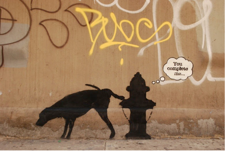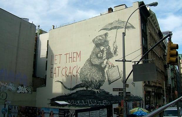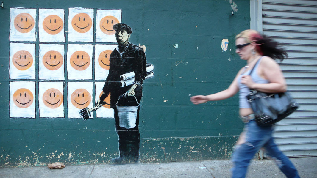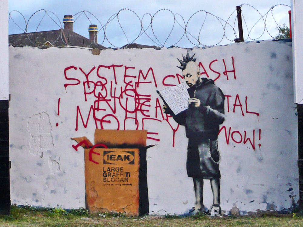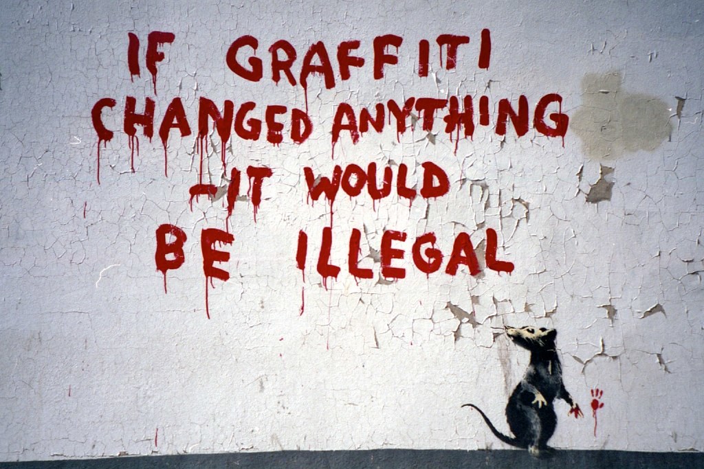 “Imagine a city where graffiti wasn’t illegal, a city where everybody could draw wherever they liked. Where every street was awash with a million colors and little phrases. Where standing at a bus stop was never boring. A city that felt like a party where everyone was invited, not just the estate agents and barons of big business. Imagine a city like that and stop leaning against the wall – it’s wet.”