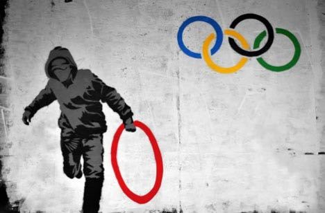 Hooded Man Stealing Olympic Ring, London, July 2002