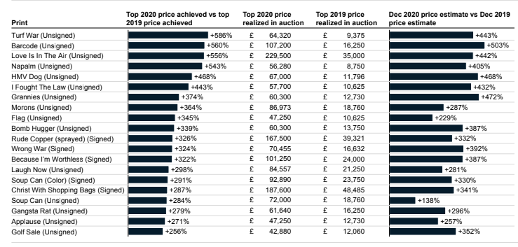 1. Most Sold Prints at Auction in 2021