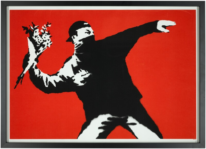 Banksy released around 70 prints from 2003 to 2010, most of them published by Pictures on Walls, amounting to some 30,000 prints now in circulation. As there is no current official gallery representation for Banksy, all works are now traded in the secondary market. Banksy only released very few prints since Choose your Weapon in 2010. Sale Ends (version 2), a revised version of the eponymous 2006 print, was released in 2017 as an edition of 500 signed prints. Banksquiat was released in two versions of 300 signed prints each in 2019 along with Thrower, which was released in an edition of 300 through Banksy’s Gross Domestic Products. As a result, there is a limited level of inventory available, that in theory and over the long-term, is a key factor for price increase, when faced with a growing demand globally.