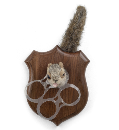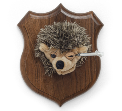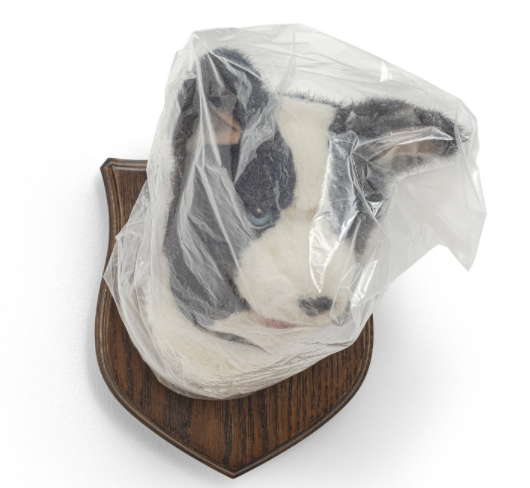 Soft Toys are Banksy’s version of hunter’s taxidermy trophies. Mounted onto a wooden plaque, the animal is made to look like a hunting trophy while we gloss over the fact that it is also a victim of the hunter’s desire to kill for sport. Certainly, animals are also the victims of humanity’s centuries long habit of pollution and ecological destruction.