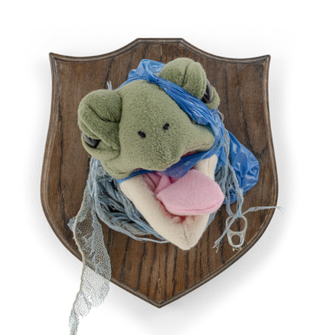Seeming at first glance to sneer at the so called “snowflake generation,” the work could also be interpreted as promoting an environmental message with the aid of a visual pun. Adding to its sustainable credentials and message is the fact that the plush dolls were “upcycled” – each piece in the series is described as being made from charity shop kids toys and genuine random beach detritus.” The buyer is also clearly warned that this means they “may contain germs/infectious substances.”