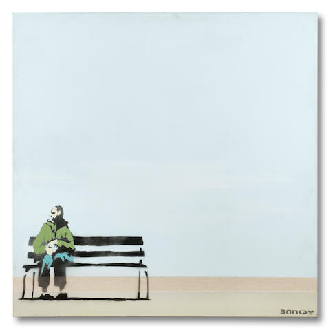 from 2004 is a rare example of Banksy’s stenciling style on found material which is not only entirely fresh to the market but also depicts one of the most playful and memorable images from his oeuvre, which first appeared at his major breakthrough exhibition Turf War in 2003.