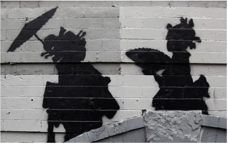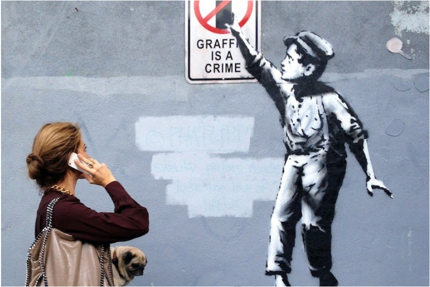 The owner of the wall placed a glass case on the mural to protect it and preserve it, further adding to its standing as an artwork rather than graffiti. Additionally, Banksy’s name and fame gives the painting justification as street art, elevating it from other graffiti.
