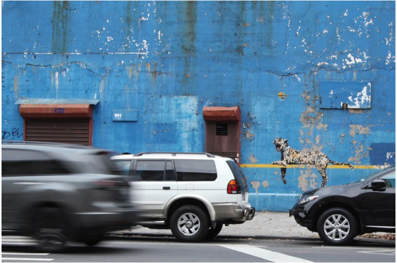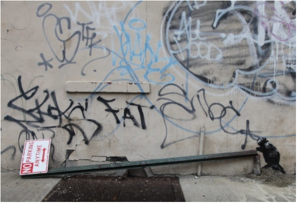 On 1 October 2013, Banksy began a one-month “show on the streets of New York,” for which he opened a separate website and Twitter account. Each day of the month in October, he produced one street art piece in a different part of the city. Banksy even provided an audio-guide available on a toll-free number for each work created, as if each of those works were part of a curated exhibit within a museum with audio-guides.