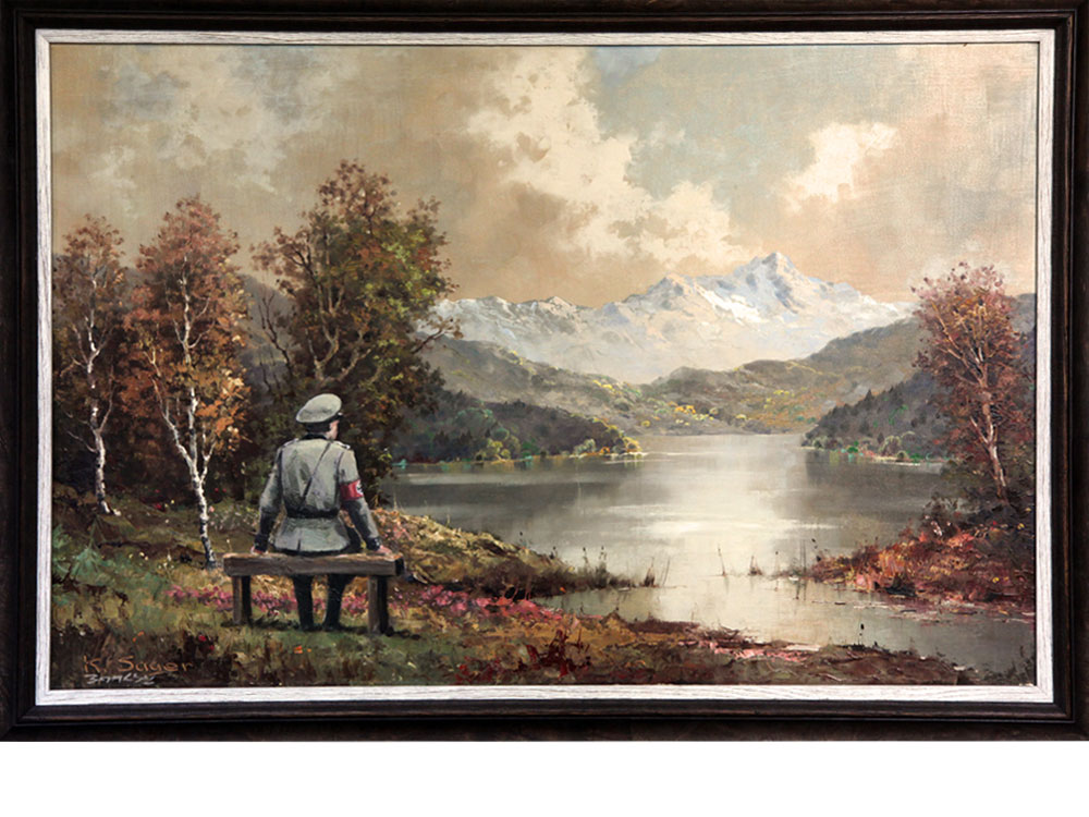 A thrift store painting vandalized then re-donated to the thrift store.