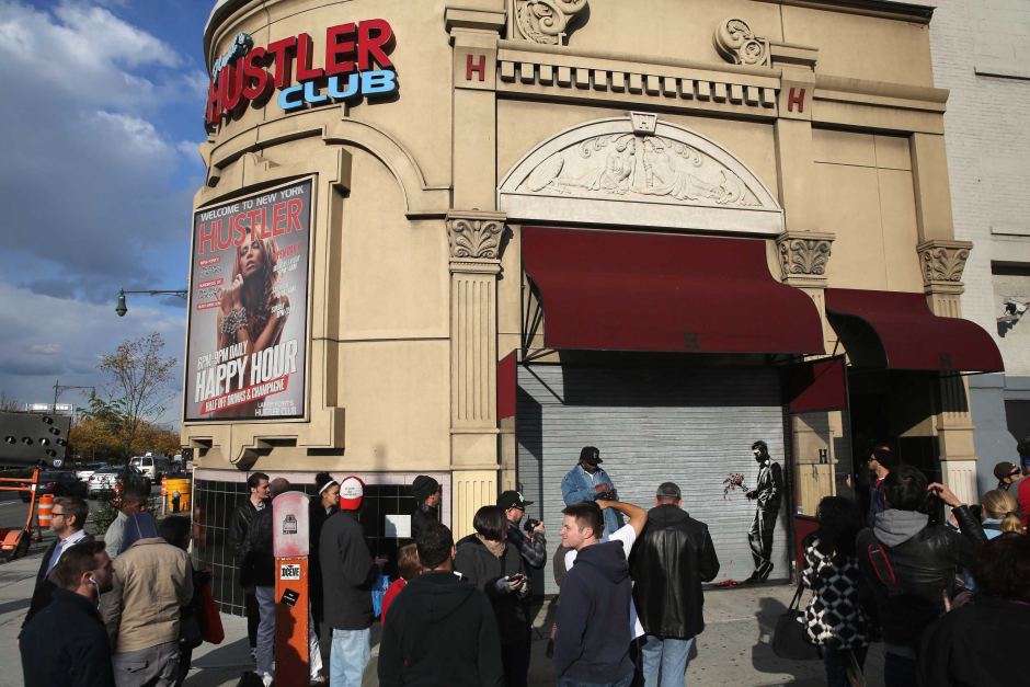 After a day off due to “police activity,” Banksy is back putting up this interesting piece on the side of the Hustler Club in Hell’s Kitchen. Banksy posted a caption along with a picture of the stencil on his website, suggesting this man would be in the wrong place if he wants to find genuine love.
