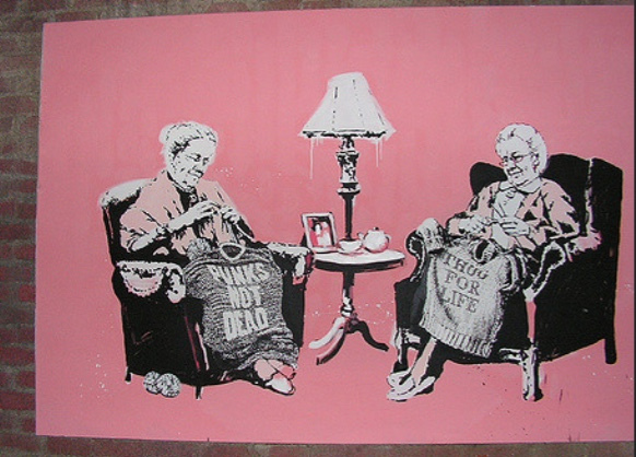 Banksy might also well be encouraging the older generations to pass down their acts of defiance to the future generations, along with the knitted jumpers they gift their grandchildren.