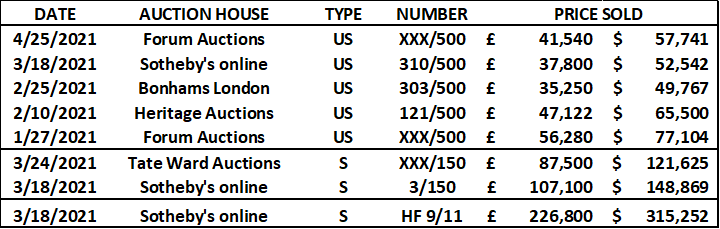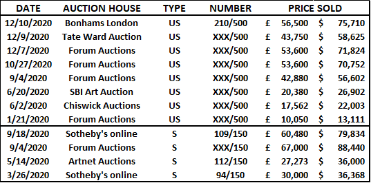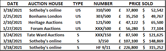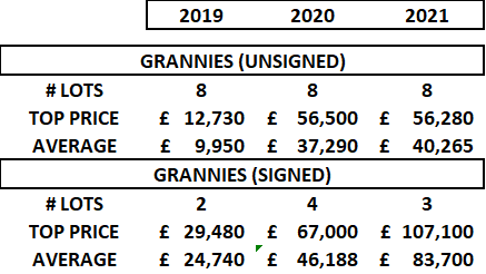Grannies (hand-finished) made its auction debut at Sotheby’s online on 18 March 2021 for GBP 226,800 (USD 315,252).