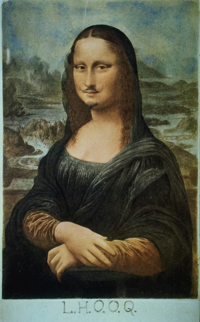 Marcel Duchamp has created one of the most famous irreverent appropriations of Mona Lisa with his L.H.O.O.Q artwork. First conceived in 1919, the work is one of what Duchamp referred to as “readymades” or, more specifically, a rectified ready-made. The readymade involves taking mundane, often utilitarian objects not generally considered to be art and transforming them, by adding to them, changing them, or (as in the case of his most famous work, Fountain) simply renaming and reorienting them and placing them in a different setting. In L.H.O.O.Q., Marcel Duchamp used a cheap postcard reproduction of Mona Lisa, onto which the artist drew a moustache and beard in pencil and appended the title.