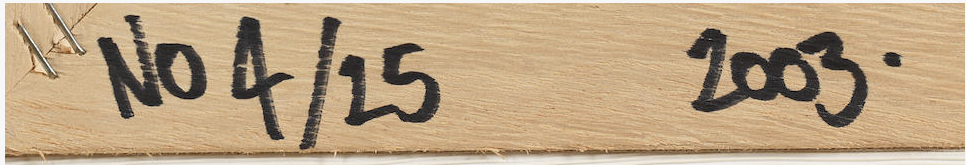 Dated 2003 and numbered 4/25 on the reverse