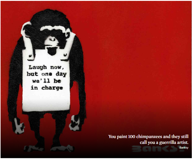 Banksy’s derisive art has provoked divisive opinion, granting him a reputation of infamy as much as world renown; but love him or hate him, it is indisputable that his bold, subversive and pivotal artistic voice has earned him an established place within contemporary art history. Don’t laugh – he’s already in charge.