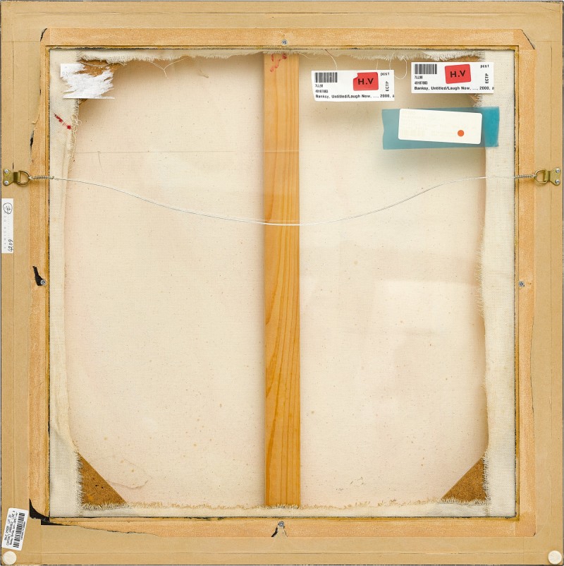 The chimpanzee has appeared as a recurring motif in Banksy’s oeuvre since 2002, when the artist produced a six-meter-long stenciled graffiti work entitled Laugh Now. The work depicts a row of subservient apes wearing aprons, some of which bear the inscription ‘Laugh now, but one day we’ll be in charge’. It has since become one of Banksy’s most iconic and widely disseminated images, making headlines in 2008 when the original artwork sold successfully at auction, breaking the record for the artist at the time.