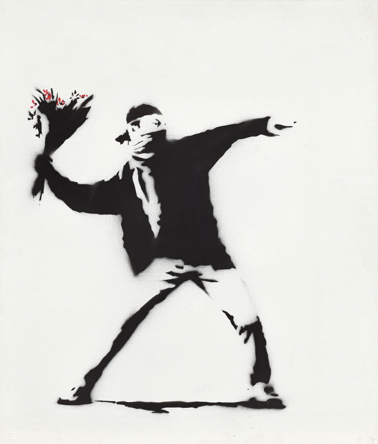 Like Pablo Picasso’s Guernica, William Hogarth’s engravings, Andy Warhol’s silkscreens and Grayson Perry’s ceramic pots, Banksy’s works are powerful reflections of his zeitgeist. Unlike many of his predecessors, however, his creations are fundamentally conceived as actions: as interventions and disruptions that aspire to bring about change. The ‘flower thrower’ set in motion an idea that would become central to Banksy’s practice: namely, that art should belong to the people it represents, and—like the hurled bouquet itself—should circulate freely within the world.