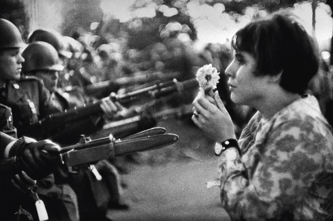 The choice of flowers, over a brick or hand grenade, is significant, evoking the sentiment of the Flower Power movement and the associated anti-war demonstrations in America during the 1960s. Images from the time show protestors offering flowers to military police, and—in a landmark Pulitzer Prize-nominated photograph of 1967—placing carnations inside their rifle barrels. Banksy’s work operates in a similar vein: despite its anarchic edge, its mission is ultimately one of outreach, sending sparks of joy and comfort to local communities, and timely warnings to those in positions of power.