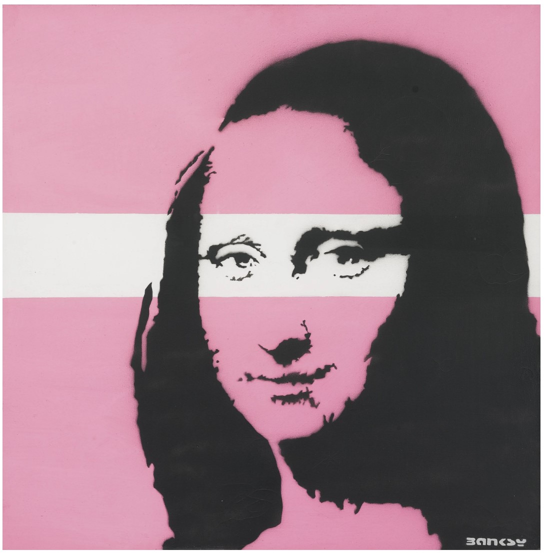 Recalling famous appropriations of the Mona Lisa by Marcel Duchamp and Andy Warhol, the present work takes its place within Banksy’s satirical, subversive and darkly humorous pantheon of imagery.