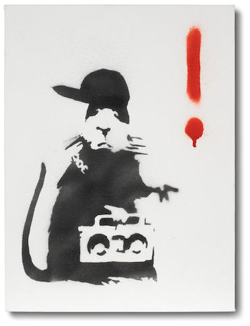 Gangsta Rat appears to have recently drawn an exclamation point, as the paint is still dripping. He seems to emphasize some idea or commentary, or to simply draw the attention of the viewer saying “look at me!”