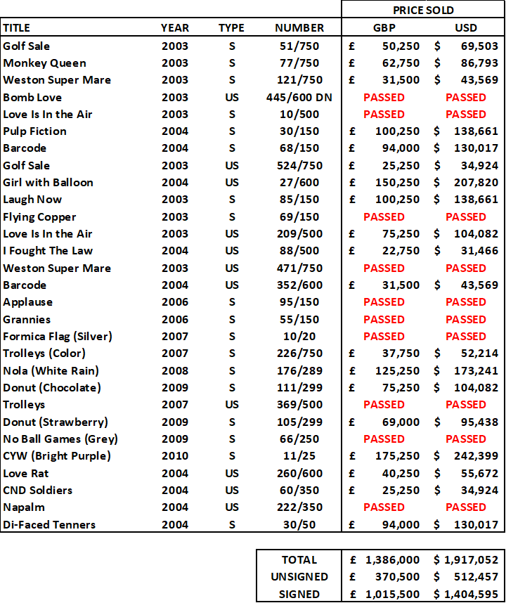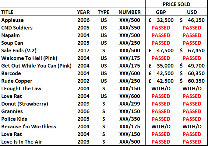 With 10 lots bought-in and 2 lots withdrawn, it might have broken the record of the worse performance ever for Banksy Prints at auction.