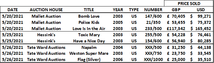 Tate Ward Auctions included no less than 17 Banksy Prints to its urban art auction on 24 June 2021.