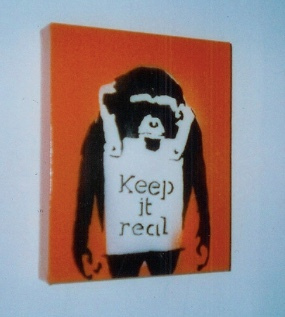 Banksy released numerous editions on canvas at Santa’s Ghetto in December 2003, including Gangsta Rat, Love Is In the Air, Kids on Guns, Lenin on Roller Skates, Petrol Bomb, Winnie the Pooh, and Mosquito.