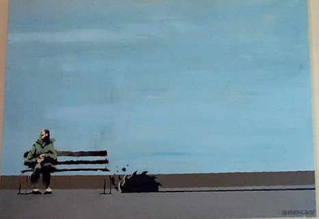 After moving to London in early 2000, Banksy returned to his hometown of Bristol in February of the same year, where he opened his first solo-exhibition under his own name at the restaurant Severnshed, now called the Harbor House, located in a boathouse at the Bristol docks.