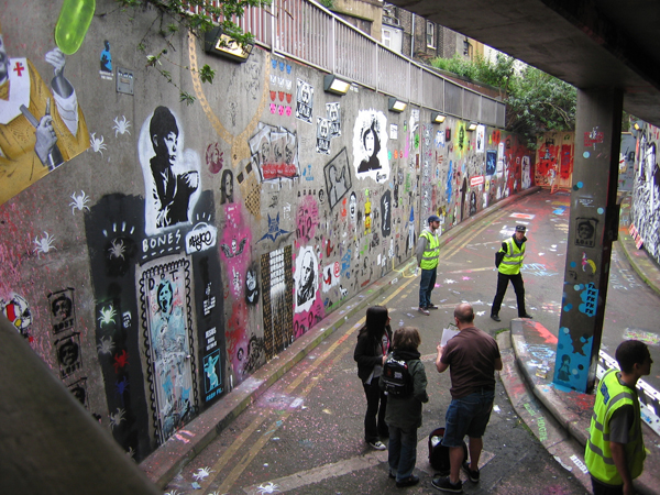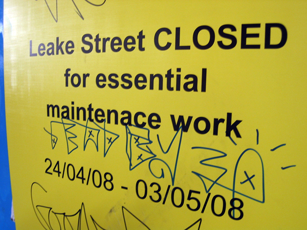 Banksy hosted an exhibition called The Cans Festival in London, over the weekend of 3-5 May 2008. It took place on Leake Street, a road tunnel formerly used by Eurostar underneath London Waterloo station. Graffiti and stencil artists were invited to join in and paint their own artwork, the only condition being that their art could not cover anyone else’s.