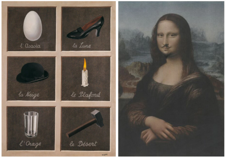 RIGHT: MARCEL DUCHAMP, L.H.O.O.Q. MONA LISA. 1919. IMAGE © CNAC/MNAM, DIST. RMN-GRAND PALAIS / ART RESOURCE, NY. ART © ASSOCIATION MARCEL DUCHAMP / ADAGP, PARIS / ARTISTS RIGHTS SOCIETY (ARS), NEW YORK 2022