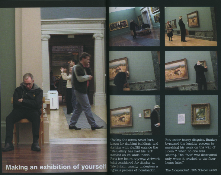 Banksy has long been outspoken about commodification, consumerism and humanity’s abuse of the environment. In the present work, this is reflected through a marriage of cautionary text and images of places we are conditioned to mindlessly photograph. In asserting that these places are not photo opportunities, the artist is confronting the viewer and their priorities. The artist notes: “The vandalized paintings reflect life as it is now. We don’t live in a world like Constable’s Haywain anymore and, if you do, there is probably a travelers’ camp on the other side of the hill. The real damage done to our environment is not done by graffiti writers and drunken teenagers, but by big business… exactly the people who put gold-framed pictures of landscapes on their walls and try to tell the rest of us how to behave.” (Banksy quoted in: Channel 4 News, 13 October 2005)