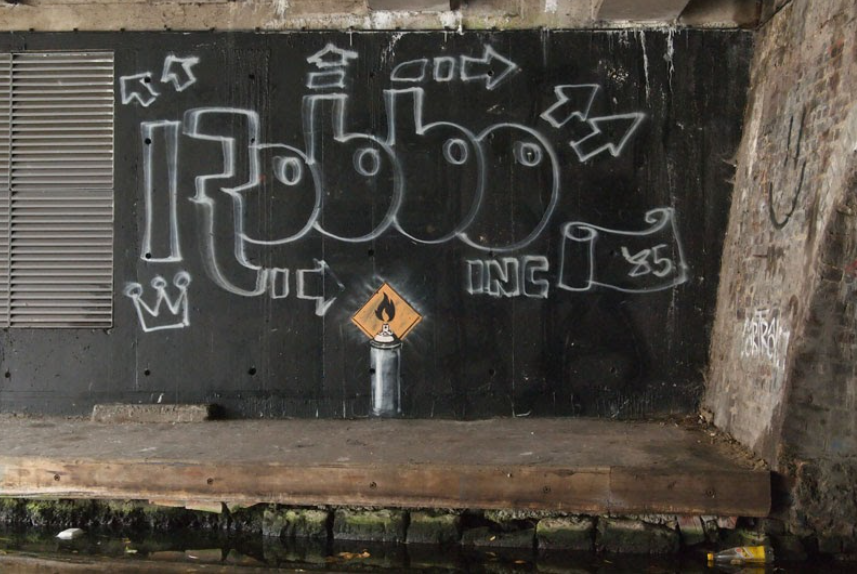 In 1985, 15-year-old King Robbo painted a graffiti work under the British Transport Police Headquarters on a wall beside Regent’s Canal in Camden, London which was only accessible by water. A large full color graffiti piece, called “Robbo Incorporated”, it had over the years become the oldest piece of graffiti in London. Over time, virtually all of his works had been gradually removed from London’s trains and walls by authorities, except for this piece.