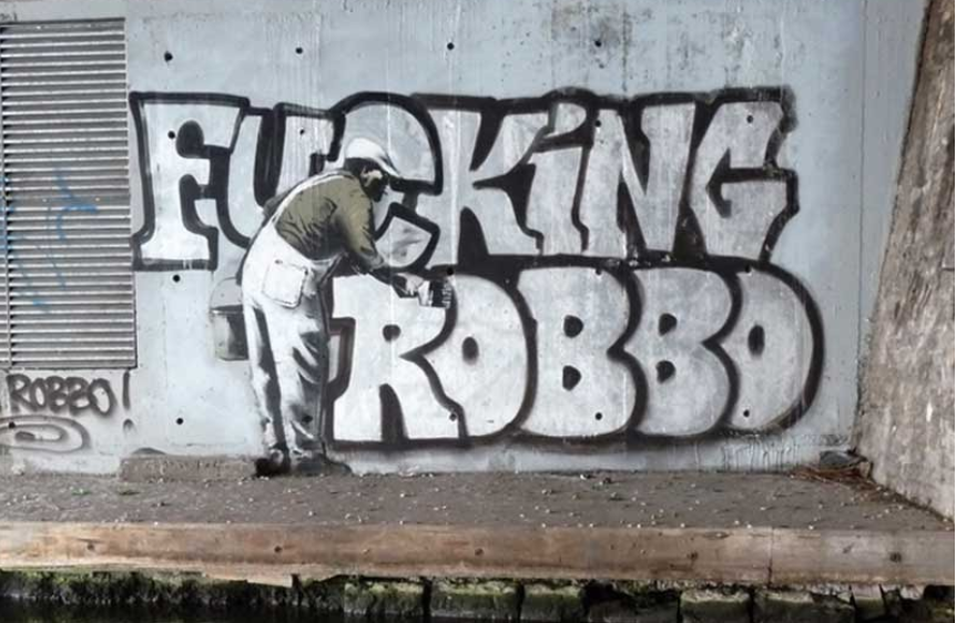 Banksy paints poor replica of original Robbo outline
